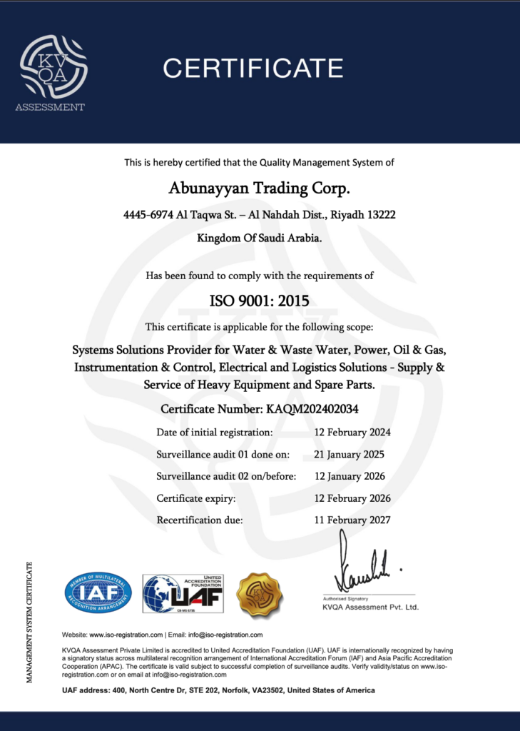 - How does Abunayyan Trading maintain these certifications? Through regular audits, ongoing improvements, and strict adherence to ISO standards.